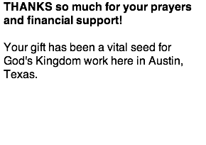 Many of you have supported Horizon through your prayers and financial gifts over the years. Horizon has been used by God is so many ways in Austin. This house church has been a true lighthouse of prayer and worship and hosting God's presence for many here.